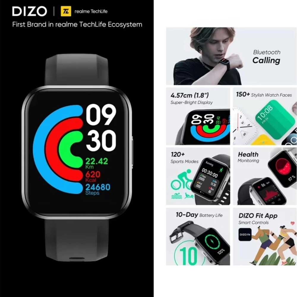 - The 2.5D curved glass is sturdy and looks elegant. With an improved battery and power saving optimization, Dizo watch D talk lasts up to 7 days just by charging it for 2 hours.
