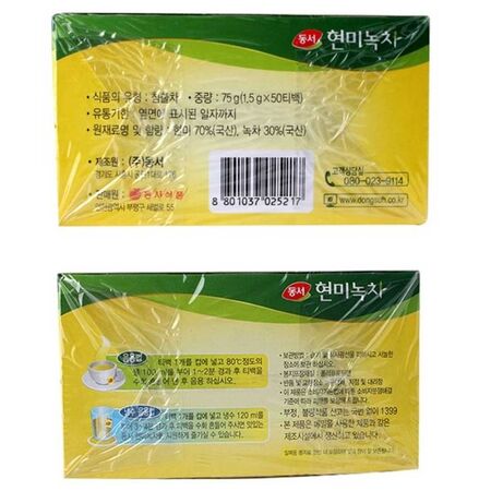 Buy Dongsuk Green Tea with Brown Rice (50Pcs) online in Bangladesh from Cellsii.com. This catechin help for the remained energy source not to be compounded to lipid by repressing enzyme activation. Theanine, a kind of amino acid, which is contained in only green tea makes body to be relaxed and felt comfortable because of it's specific nervous calmness effect.