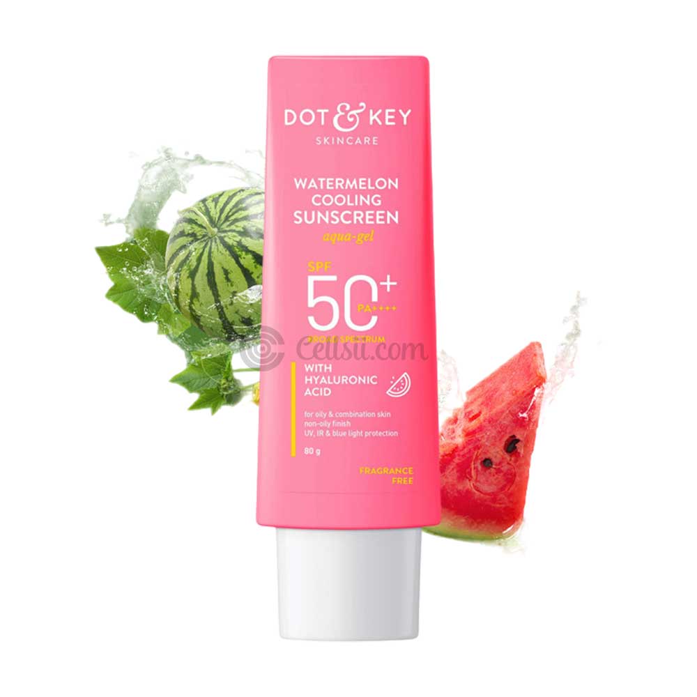 Buy Dot & Key Watermelon SPF 50+ PA++++ Cooling Hyaluronic Sunscreen 50g online in Bangladesh from Cellsii. Dot & Key Watermelon SPF 50+ PA++++ Cooling Hyaluronic Sunscreen is a lightweight, gel-based sunscreen designed to provide high-level protection against UVA and UVB rays. Enriched with the goodness of watermelon extract and hyaluronic acid, this sunscreen not only shields your skin from harmful sun exposure but also hydrates and cools it, leaving a refreshing and non-greasy finish.