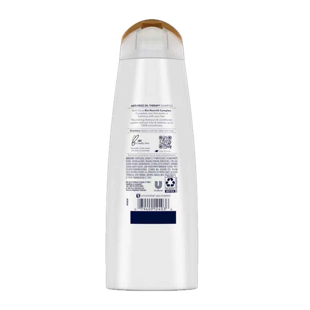 Apply this nourishing shampoo to wet hair, lather and rinse. For best results, follow up with Dove Anti-Frizz Oil Therapy Conditioner.