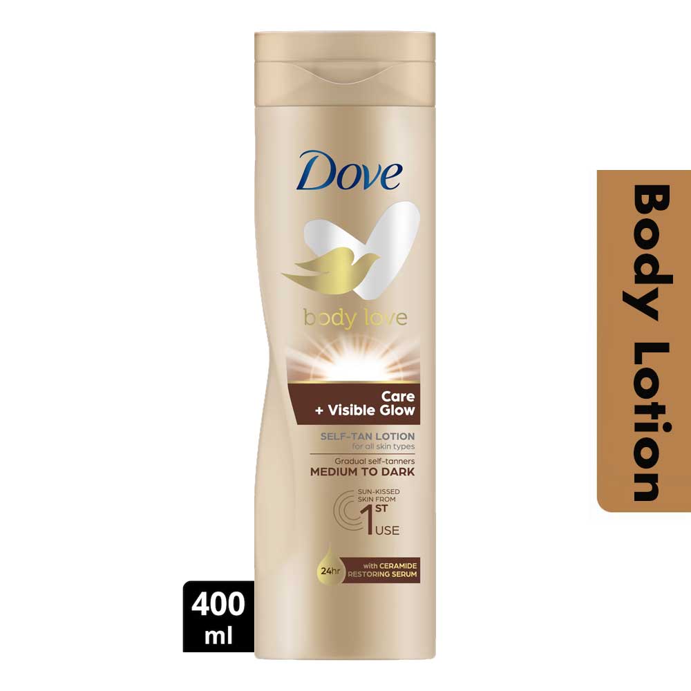 - Using a gradual self-tanning lotion like Dove Visible Glow Gradual Self-Tan Body Lotion Medium to Dark will give you that gorgeous glow whatever the weather, whilst also caring for your skin.