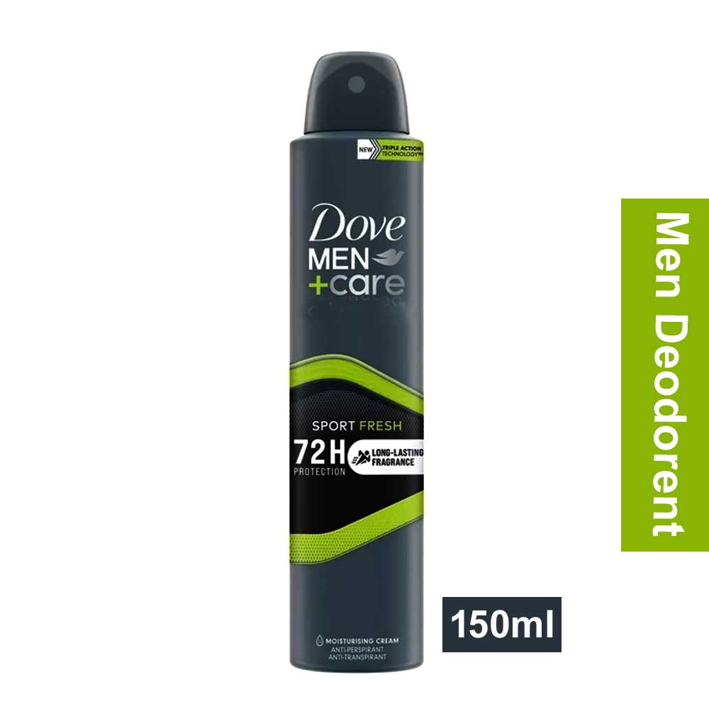 Buy Dove Men+ Care Sport Fresh 72h Protection Antiperspirant Spray 150ml online in Bangladesh from Cellsii. Get 72-hour protection from underarm sweat and odour with this deodorant for men designed for sporty lifestyles. Triple Action Technology for sweat, odour and skin protection.
