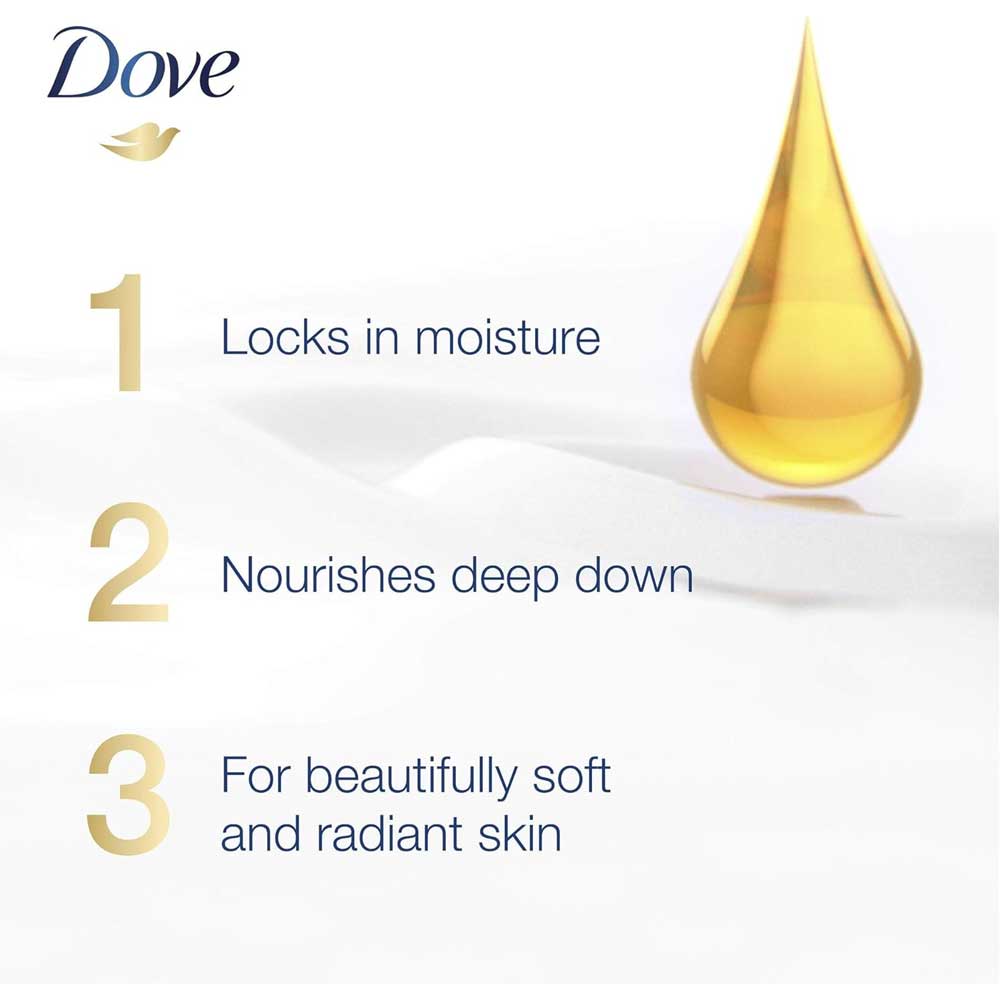 - Dove moisturiser enriched with NutriDUO, to nourish the deeper layers of the skin.