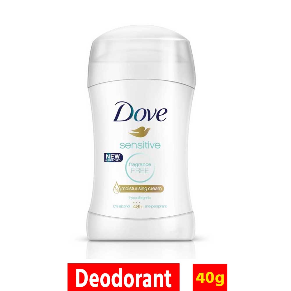 Buy Dove Sensitive Fragrance Free Anti-Perspirant Stick 40g online in Bangladesh from Cellsii.com. New Dove Sensitive deodorant, with our signature 1/4 moisturising cream, is a fragrance-free, hypoallergenic formulation, specially created with only the essential ingredients to keep underarms feeling dry and looking healthy. This non-irritating antiperspirant with 48 hour protection that contains no fragrance, parabens, colorants or alcohol. It's Dove's most skin-caring formula ever.