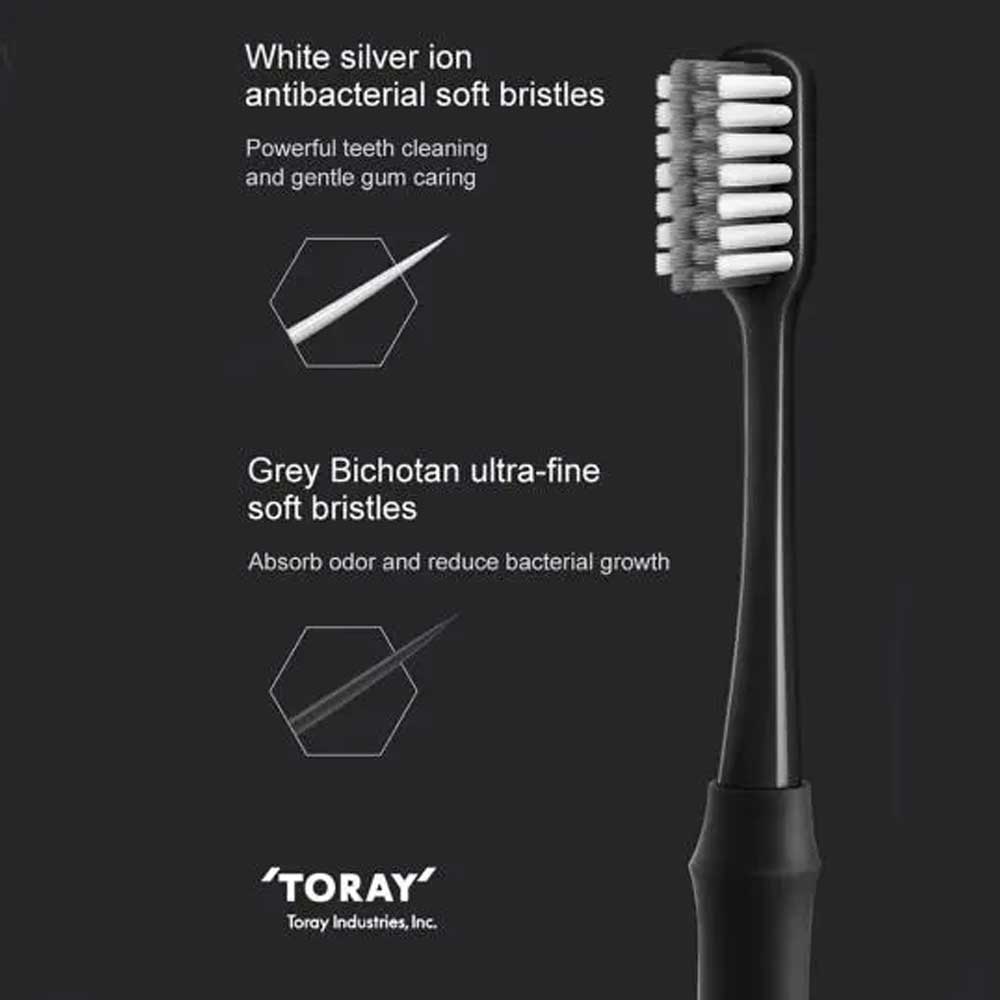 - TORAY White silver ion antibacterial and TORAY Grey Bichotan ultra-fine soft bristles.