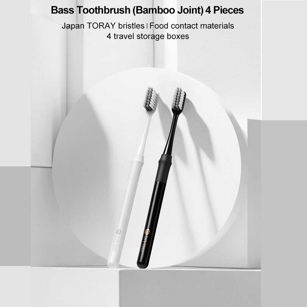 DR BEI Bamboo Joint Bass Toothbrush With Travel Storage Boxes 4Pcs