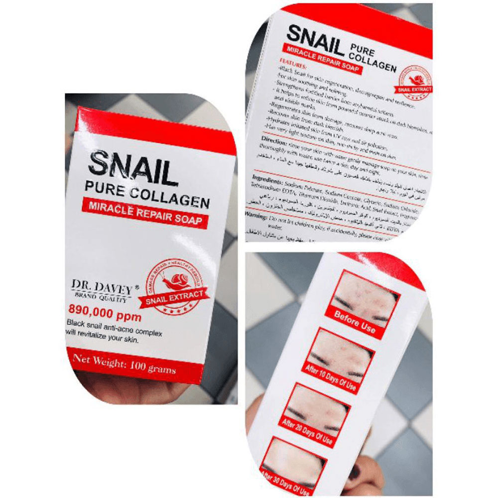 Buy Dr Davey Snail Pure Collagen Miracle Repair Soap 100g online in Bangladesh from Cellsii.com. Black Snail for skin regeneration damage repair and resilience, For skin soothing and refining, Strengthens fortified barrier from any harmful irritants, It helps to refine skin from powerful counter attack on dark blemishes,scar and visible mark, Regenerates skinfrom damage removes deep acne scars ,Recover skin from dark blemish.