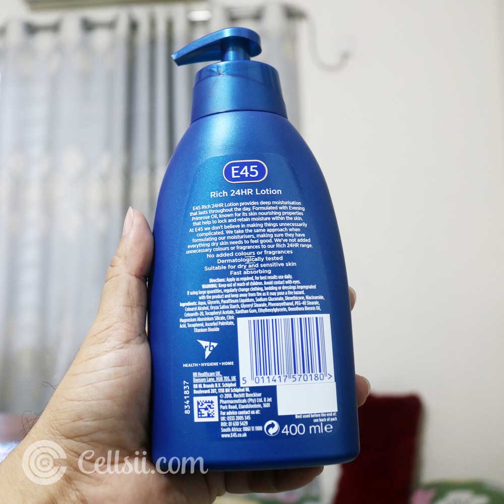 Buy E45 Rich 24Hr Deep & Long Lasting Moisturisation Lotion 400ml online in Bangladesh from Cellsii. The E45 Rich 24HR Lotion provides deep moisturisation that lasts throughout the day. Formulated with Evening Primrose Oil, known for its skin nourishing properties that help to lock and retain moisture within the skin.