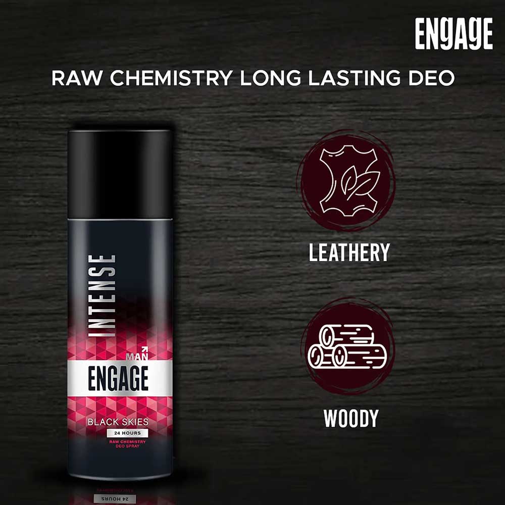 Buy Engage Man Intense Black Skies Deo Spray 150ml online in Bangladesh from Cellsii. Engage Man Intense Black Skies Deo Spray is a premium body deodorant designed to keep you fresh and confident throughout the day. Its bold and sophisticated fragrance blends woody and spicy notes, creating a captivating aroma that resonates with modern masculinity. Ideal for daily use, this deo spray offers long-lasting freshness and a powerful scent for any occasion.