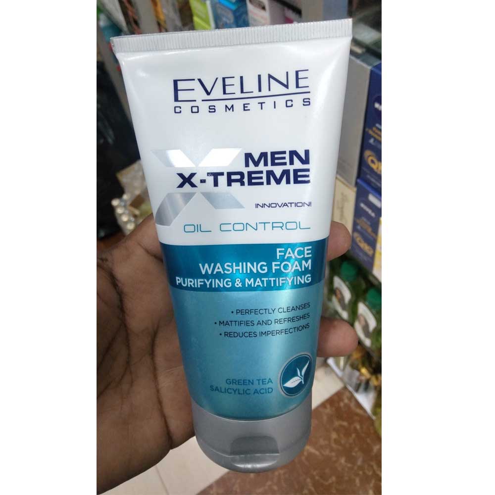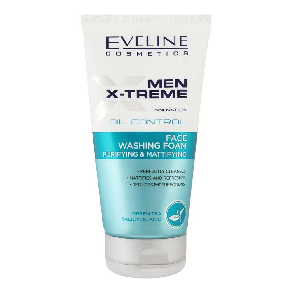 Buy Eveline Men X-Treme Oil Control Purifying & Mattifying Face Washing Foam 150ml online from Cellsii.com. Thanks to the ultra light formula, precisely removes all impurities, deeply cleanses the pores and noticeably reduces their visibility, perfectly mattifies the skin, reduces excess sebum and effictively prevents formation of imprefections.