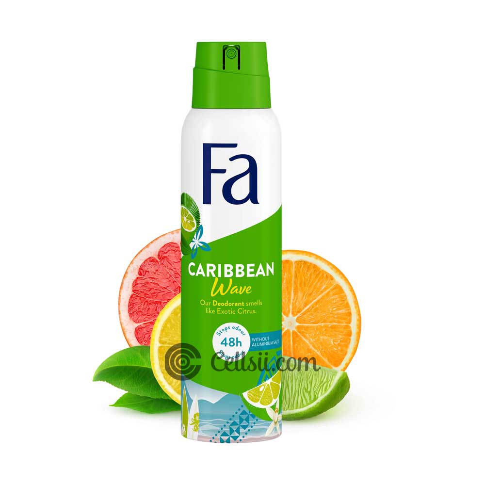 Buy Fa Caribbean Wave Citrus Deodorant Spray 200ml in Bangladesh from Cellsii. Fa Caribbean Wave Citrus Deodorant Spray offers a refreshing and invigorating fragrance inspired by the vibrant spirit of the Caribbean. With its citrusy and tropical aroma, it ensures all-day freshness while keeping you confident and odor-free. Designed for both men and women, this deodorant is gentle on the skin and provides reliable protection against sweat and odor.