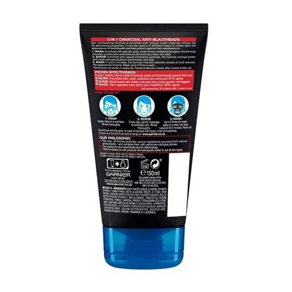 Garnier Pure Active 3 in 1 Charcoal Anti-Blackheads Face Wash 150ml