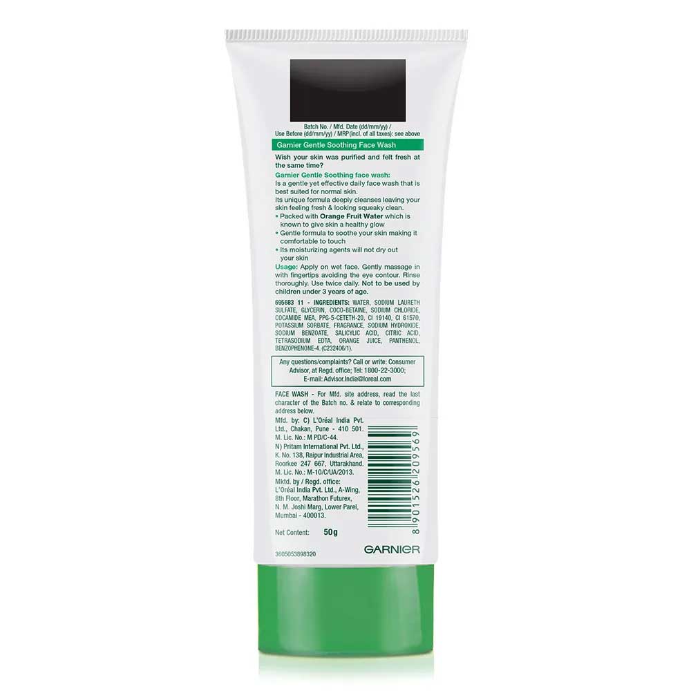 Buy Garnier Skin Naturals Gentle Soothing Face Wash 50g online from Cellsii.com. Looking for the best face wash for sensitive, dry, normal or oily skin? Garnier Gentle Soothing Face Wash is a hard-working gel-based cleanser enriched with orange fruit water that suited to all skin types. Ideal for daily use, this gentle face wash leaves the skin looking and feeling squeaky clean without stripping it of its natural oils.