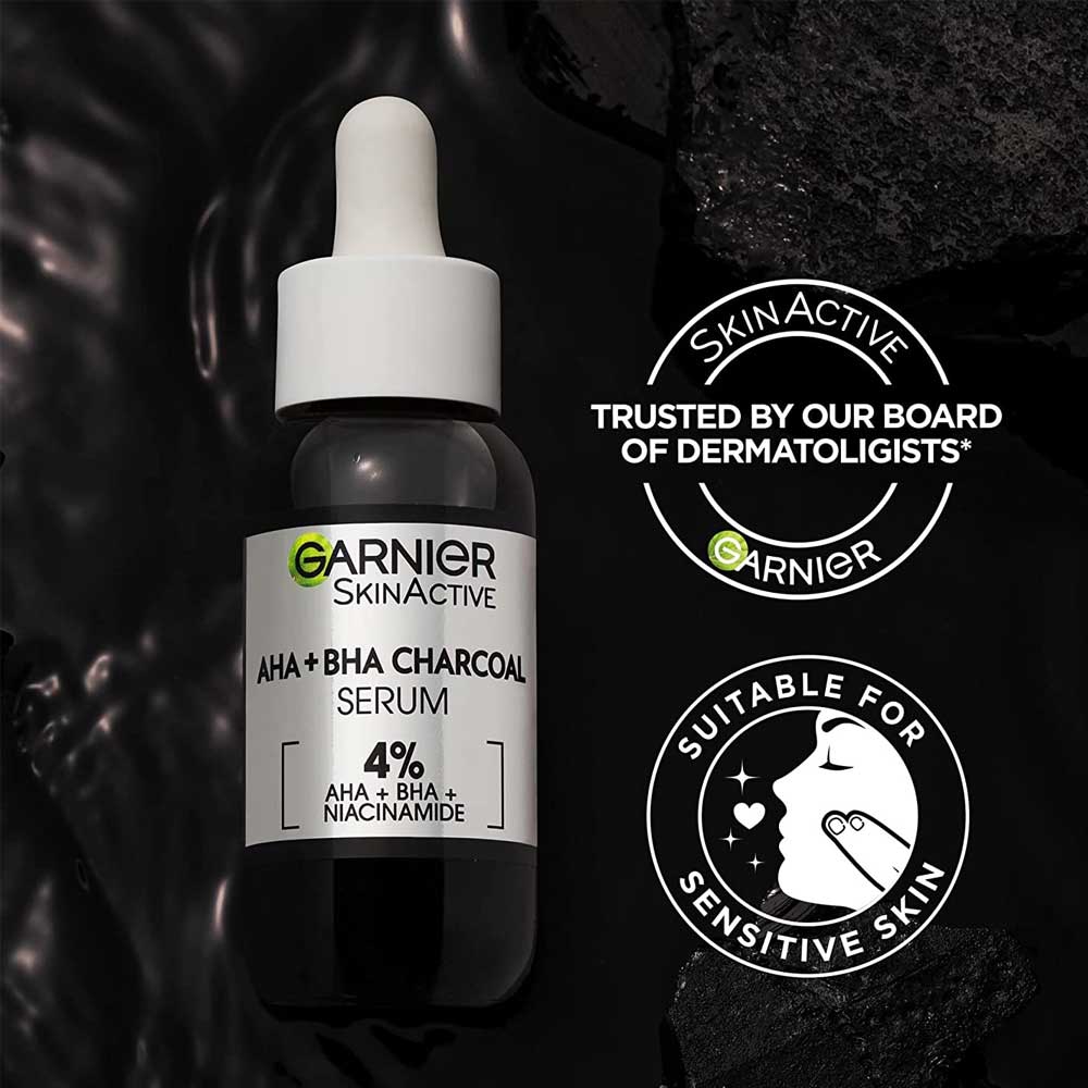 - Formulated with 4% [AHA + BHA + Niacinamide], our first charcoal serum improves appearance of residual marks and blemishes, and helps to resurface skin for smoother and more even-looking skin. Immediately after 1 use, skin feels mattified and smoother.