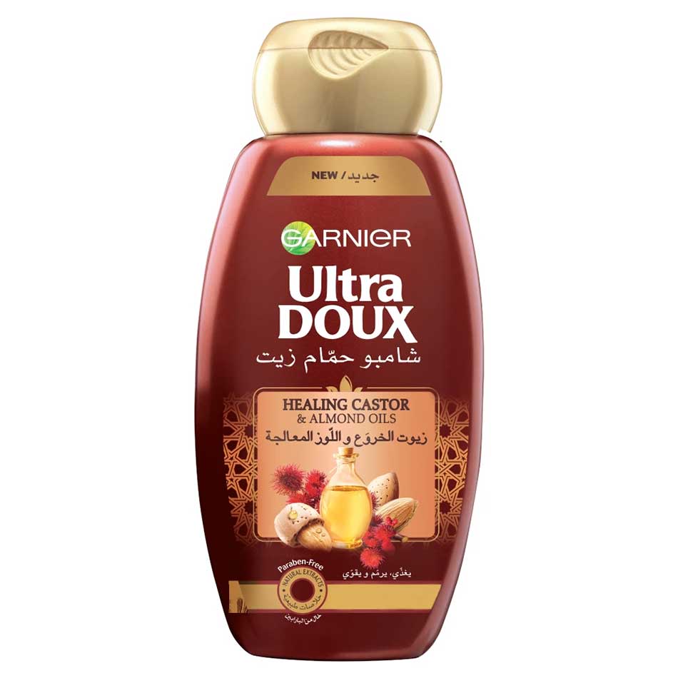 Buy Garnier Ultra Doux Healing Castor & Almond Oil Shampoo 400ml online from Cellsii.com. Healing Castor and Almond Oil Shampoo is hammam Zeit infused shampoo for damaged and weak hair with a tendency to fall. It combines between Almond Oil that recognized for its nourishing properties and Castor Oil that is rich with vitamin E. This shampoo strengthens from roots to tips and makes it healthier and stronger.
