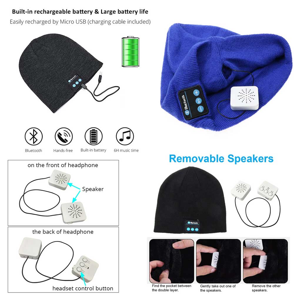 - Design to remove or re-install headset speaker driver and battery component easily in seconds from the beanie for washing purpose.