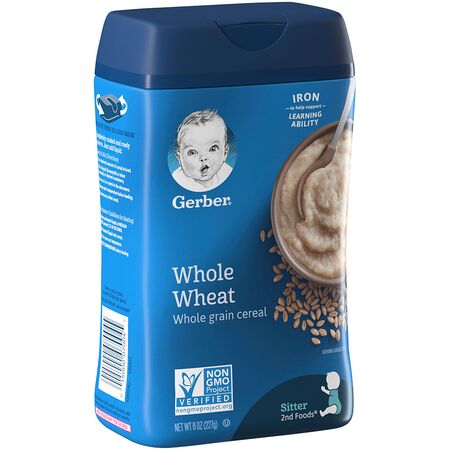 Buy Gerber Whole Wheat Whole Grain Cereal online from Cellsii.com. Once your little one has mastered Gerber Single Grain cereals give Gerber whole wheat baby cereal a try! It helps expose babies to new tastes while providing essential nutrition. It has iron to help support learning ability - just two servings of Gerber infant cereal meets your baby’s daily iron needs.