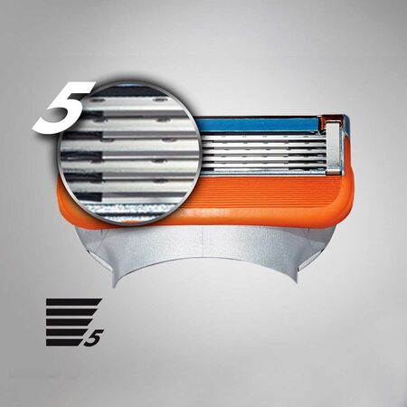 Buy Gillette Fusion5 Shaving Razor Blades 12 Cartridges from Cellsii.com in Bangladesh at best price. Experience closeness and long-lasting comfort with the Fusion5 men's razor blade refills. Featuring five sharp anti-friction blades for a shave you can barely feel, and a precision trimmer that makes shaving hard-to-reach areas such as under the nose and the sideburns easy. These razor blades for men are equipped with a Microfin Guard to gently smooth your skin before the blades and a microcomb that helps guide your hair to the blades.
