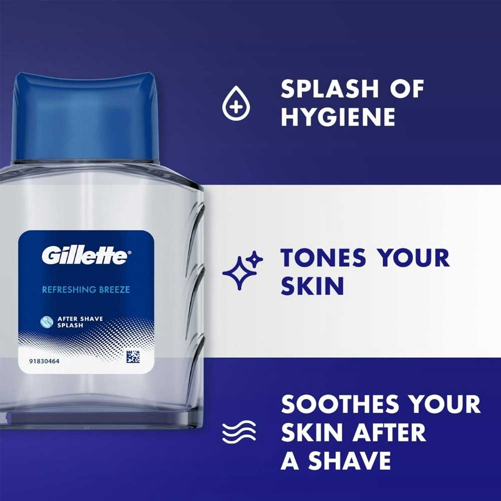 - This Gillette After Shave Splash Refreshing Breeze is mixed with moisturizers to tone your skin and is matured and filtered for a long-lasting fragrance.