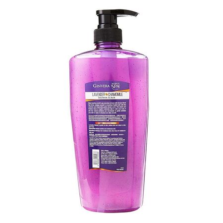 Buy Ginvera World Spa lavender and chamomile English shower scrub 750ml online from Cellsii.com. Indulge yourself in a luxurious English bath with this Lavender and Chamomile gentle shower scrub. This classic and timeless blend of English botanicals help to calm your body.
