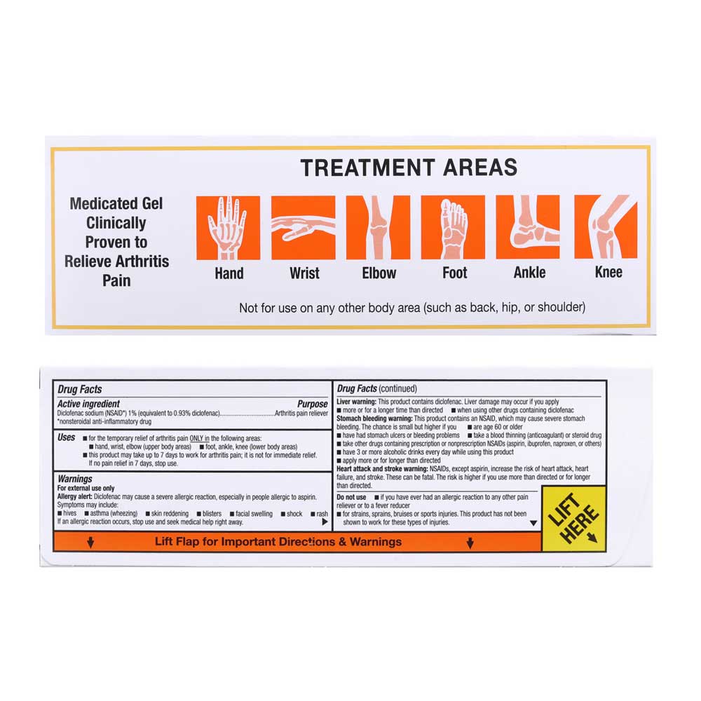 - This arthritis pain reliever contains diclofenac sodium, an NSAID 1 percent compare to the active ingredient in Voltaren Arthritis pain.