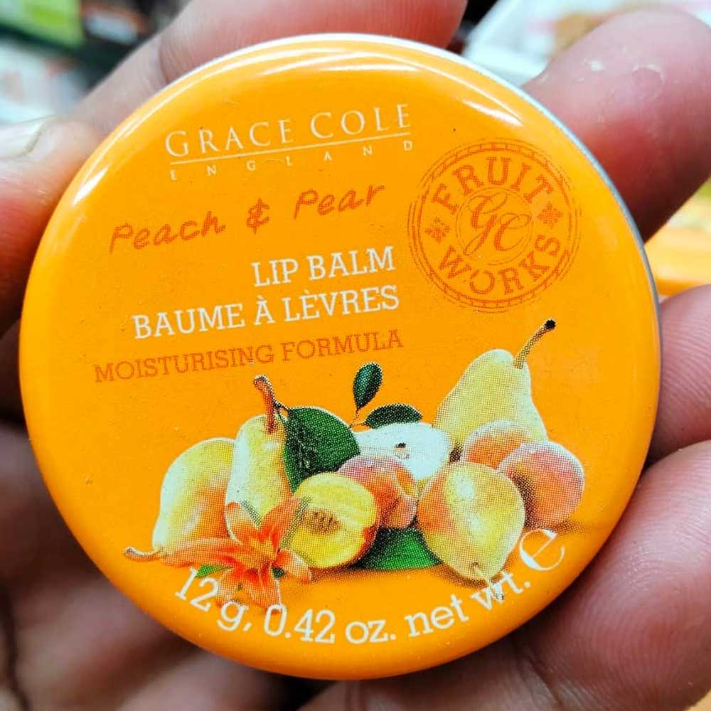 Buy Grace Cole Fruit Works Peach & Pear Lip Balm 12g online in from Cellsii.com. Grace Cole Fruit Works Peach and Pear Lip Balm. This gorgeously packaged lip balm in a cool trendy designed tin ideal for your pocket or hand bag will revive your lips leaving them feeling silky smooth and rehydrated.