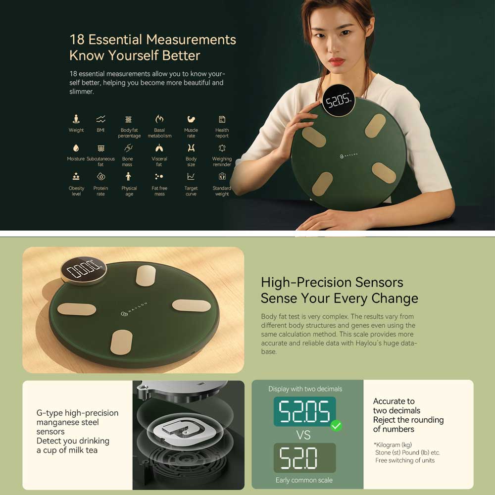 Buy Haylou CM01 smart weight body fat scale online from Cellsii.com. It takes care of your health and enjoy the figure of your dreams. The Haylou CM01 smart scale offers up to 18 measurement functions and stands out for its incredible precision. It allows you to save data and track your progress in the app.