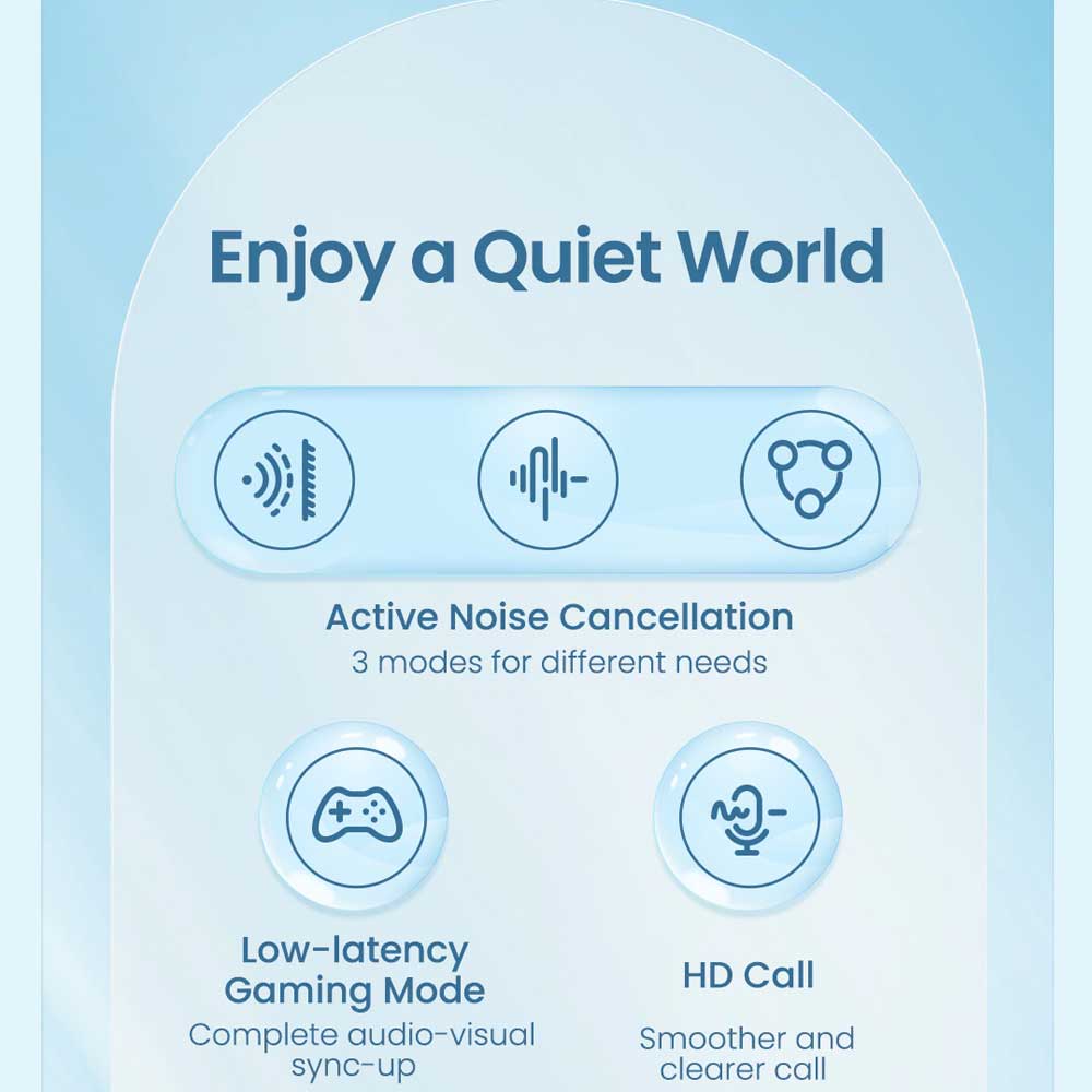 - Cut out the Noise: Put on the MoriPods ANC earbuds to automatically enable noise cancellation mode. 3 ANC modes allow you to hear what you want to hear.