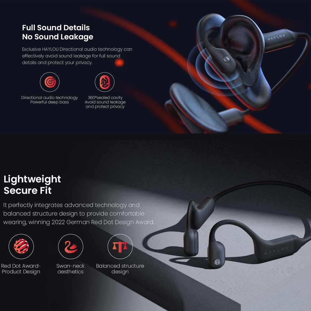 - Haylou's exclusive Directional audio technology successfully avoids sound leaking for full sound details while protecting your privacy.