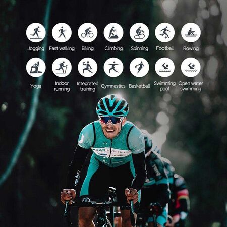 - 14 Sports Modes and 5ATM Waterproof: 14 Sport modes include outdoor running, walking, cycling, spinning, yoga, indoor running, gymnastics, basketball, football climbing, free training, rowing, open water swimming, swimming pool. RS3 is rated waterproof to 5 ATM with a metal frame and integral molding back shell design. It can withstand pressure 50 meters deep of still water for 10 min under normal temperature.