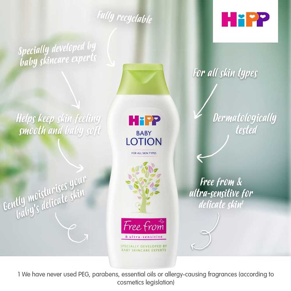 - HiPP’s Free From skincare range is specially designed and tested for infants’ delicate skin and is mild, safe, clean and caring.