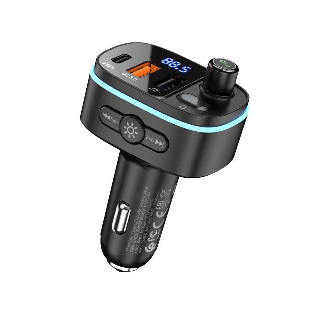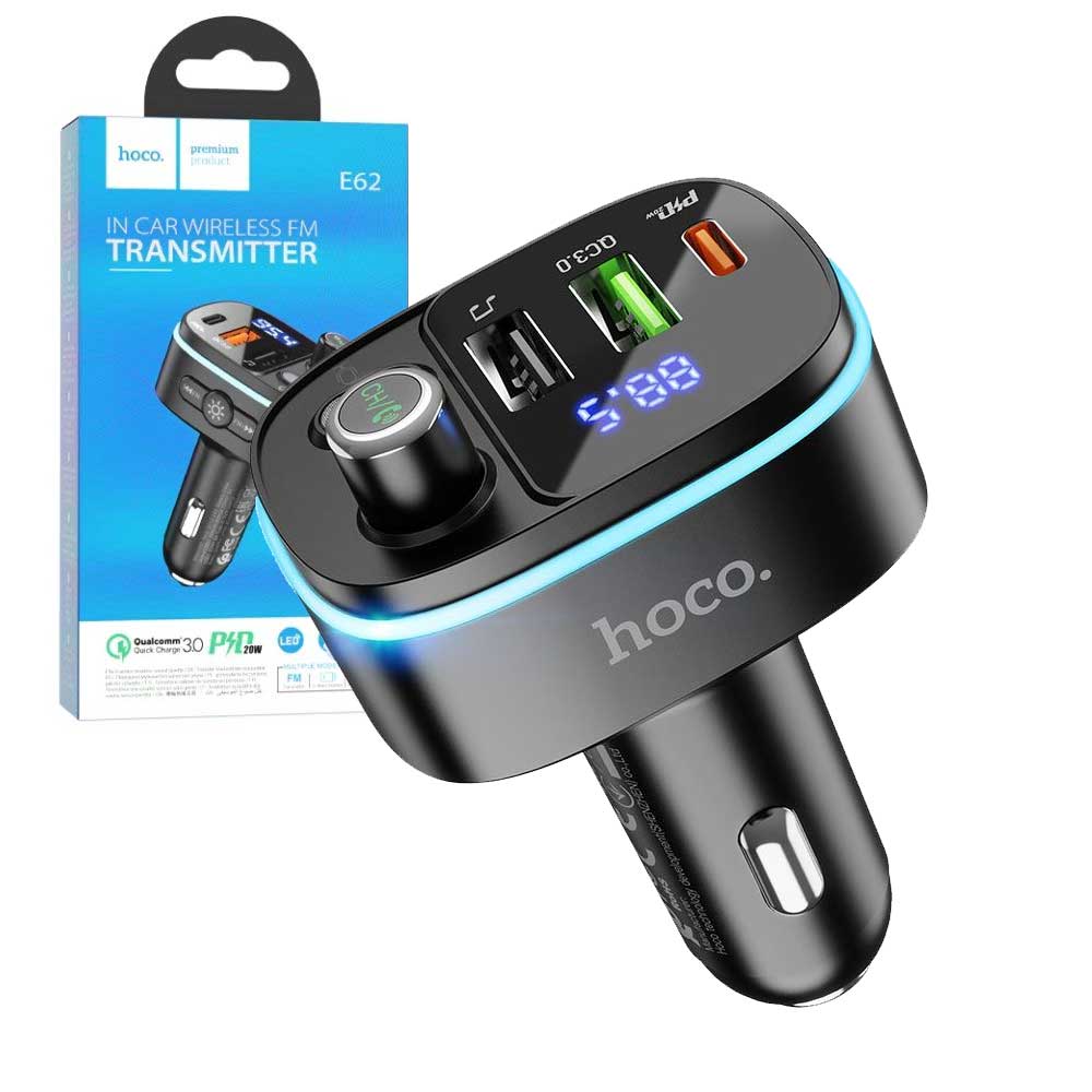 Buy Hoco E62 In Car Wireless QC3.0 FM Transmitter in Bangladesh from Cellsii. Hoco E62 Fast, in-car charger, BT v5.0, FM transmitter, with USB QC 18W and Type-C PD 20W output. Support Wireless, BT, USB disk music playback, built-in ambient light.