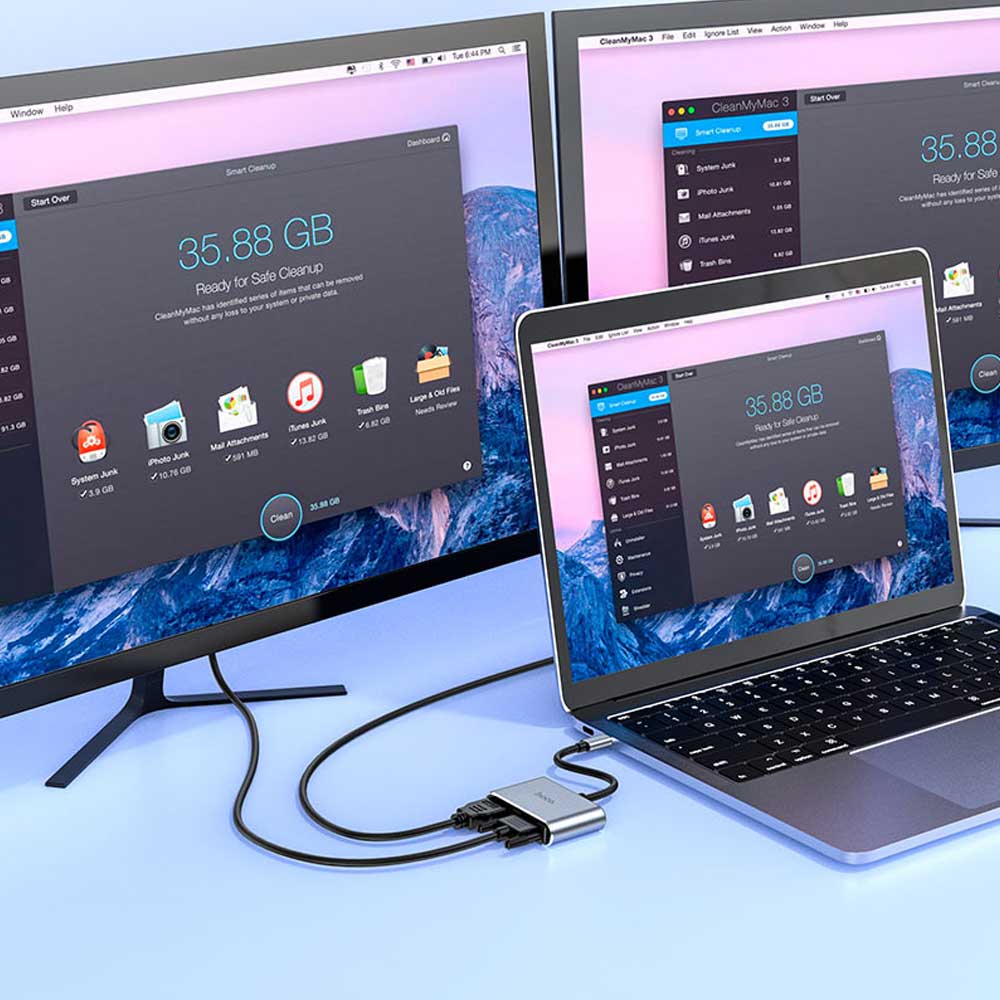 - Interface: Type-C male to HDMI + VGA + USB3.0 + PD