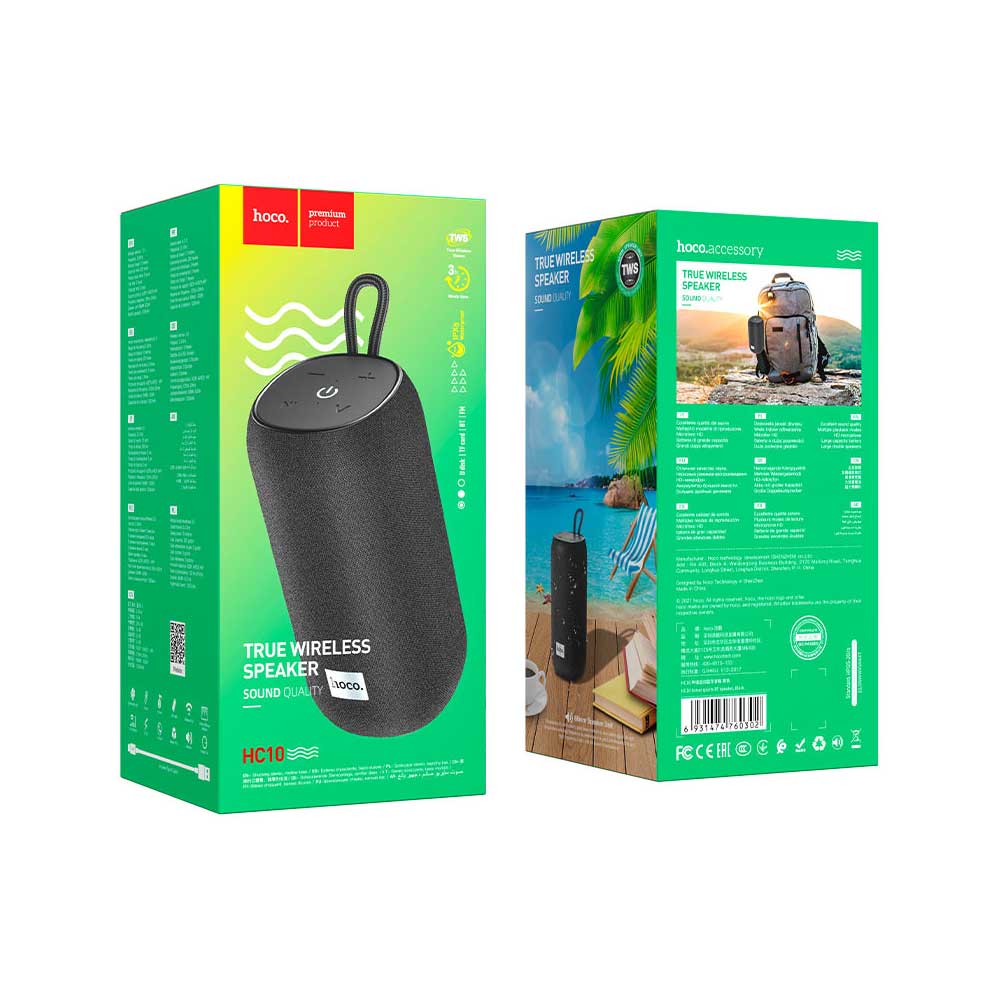 - True Wireless Stereo (TWS): Pair two HC10 speakers for a rich stereo sound experience.