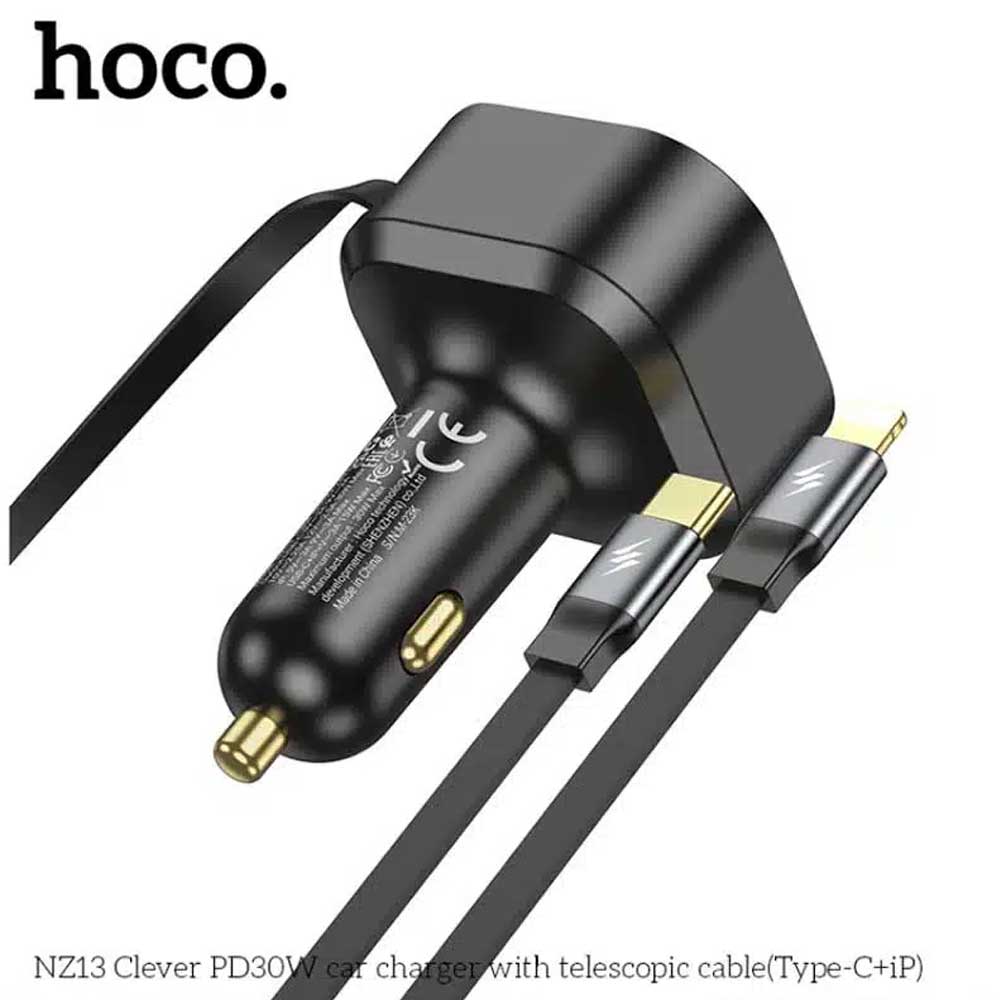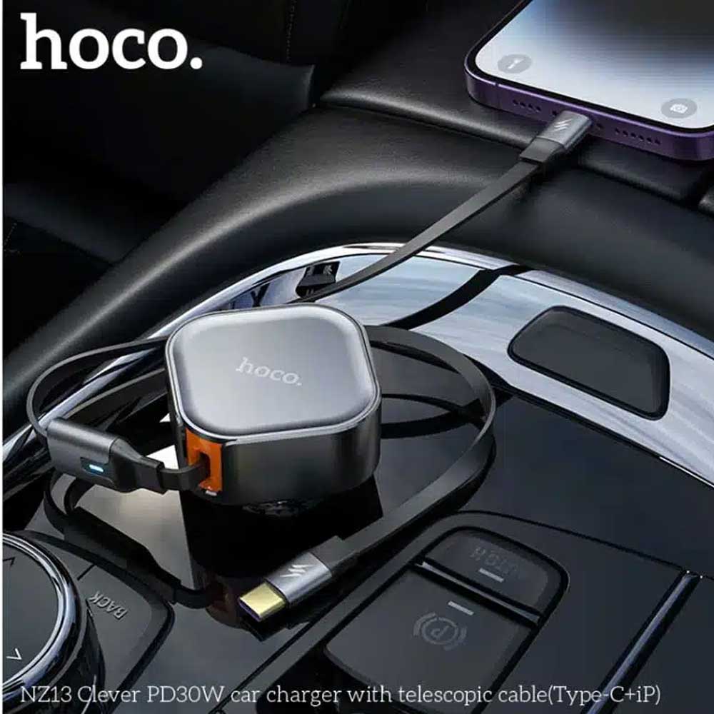 - Hoco cleaver PD30W car charger with telescopic cable (Type-3+iP).