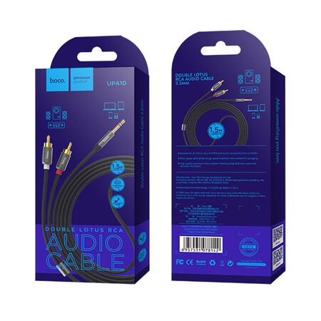 Buy Hoco UPA10 bouble lotus RCA to 3.5mm audio cable online from Cellsii.com. The use of advanced technology and high Quality tinned copper wire core makes this products super compatible as it provides perfect support for the smart phone market. UPA10 double RCA to 3.5mm audio cable is aluminum alloy shell TPE braid pure copper core gold plated plugs.