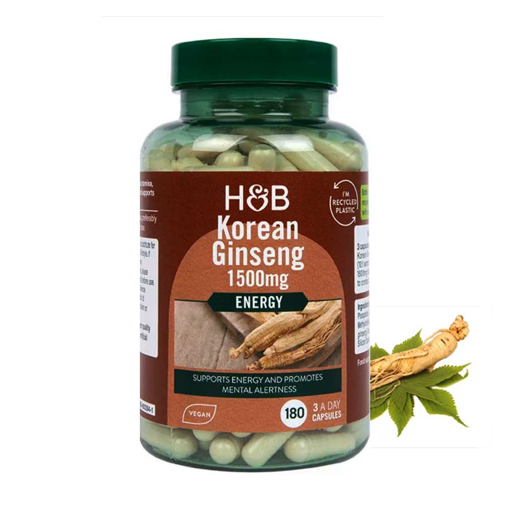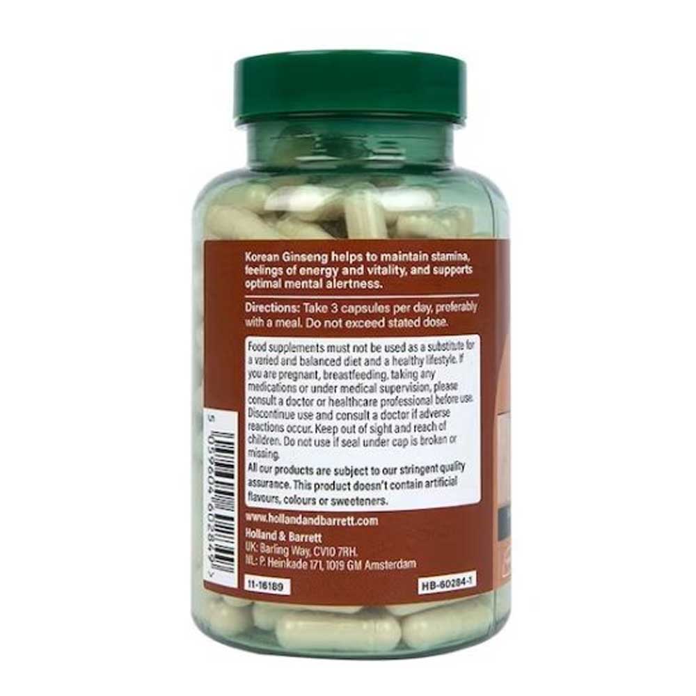 Buy Holland & Barrett Korean Ginseng 1500mg Energy 180 Tablets online from Cellsii.com. Holland & Barrett Korean Ginseng capsules are a natural, mild stimulant for the mind and body. These capsules help support energy and promote mental alertness.