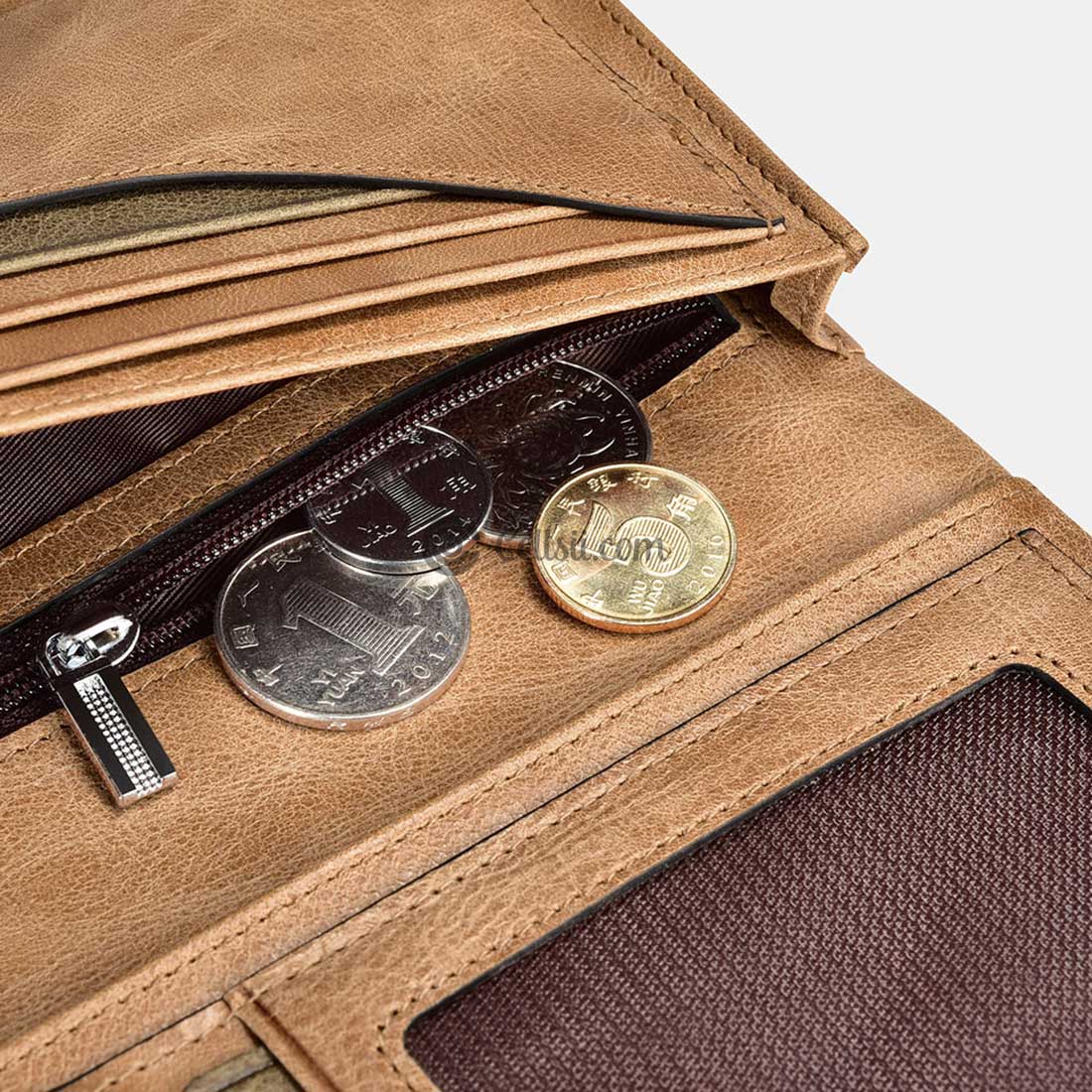 Buy ICARER cowhide real leather bifold long wallet in Bangladesh from Cellsii.com. This is classic design original leather wallet which is best fit for most iPhone and Samsung Galaxy. The wallet style leather case stores your mobile phone, cards, cash, coins and other documents that is perfect for daily use. You don't need to take another purse or a phone case in your handbag.