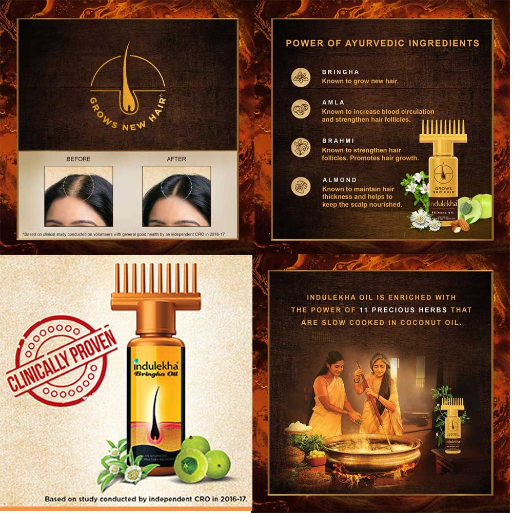 - The presence of Bringharaj, a known hair regrowth herb, helps stimulate the growth of new hair.