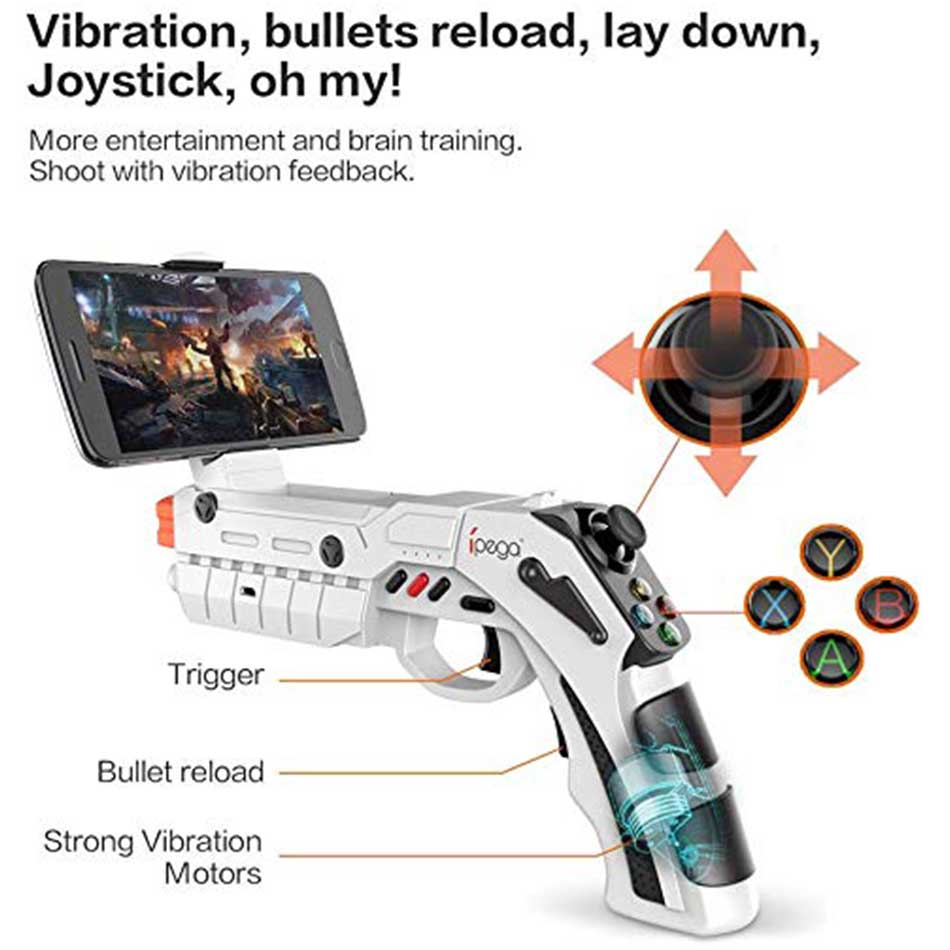 Buy Ipega 9082 AR vVibration Joystick Game Gun online from Cellsii.com. This product is compatible with AR games which download from the AR GUN App. Support mobile phone which is Android 4.4.4 and iOS 7 or above system, extendable phone holder support 4-6' mobile phones. The product designed ergonomically. It has metal feeling surface and comfortable hand hold feelings; With dual motor vibration function provide more realistic gaming experience.