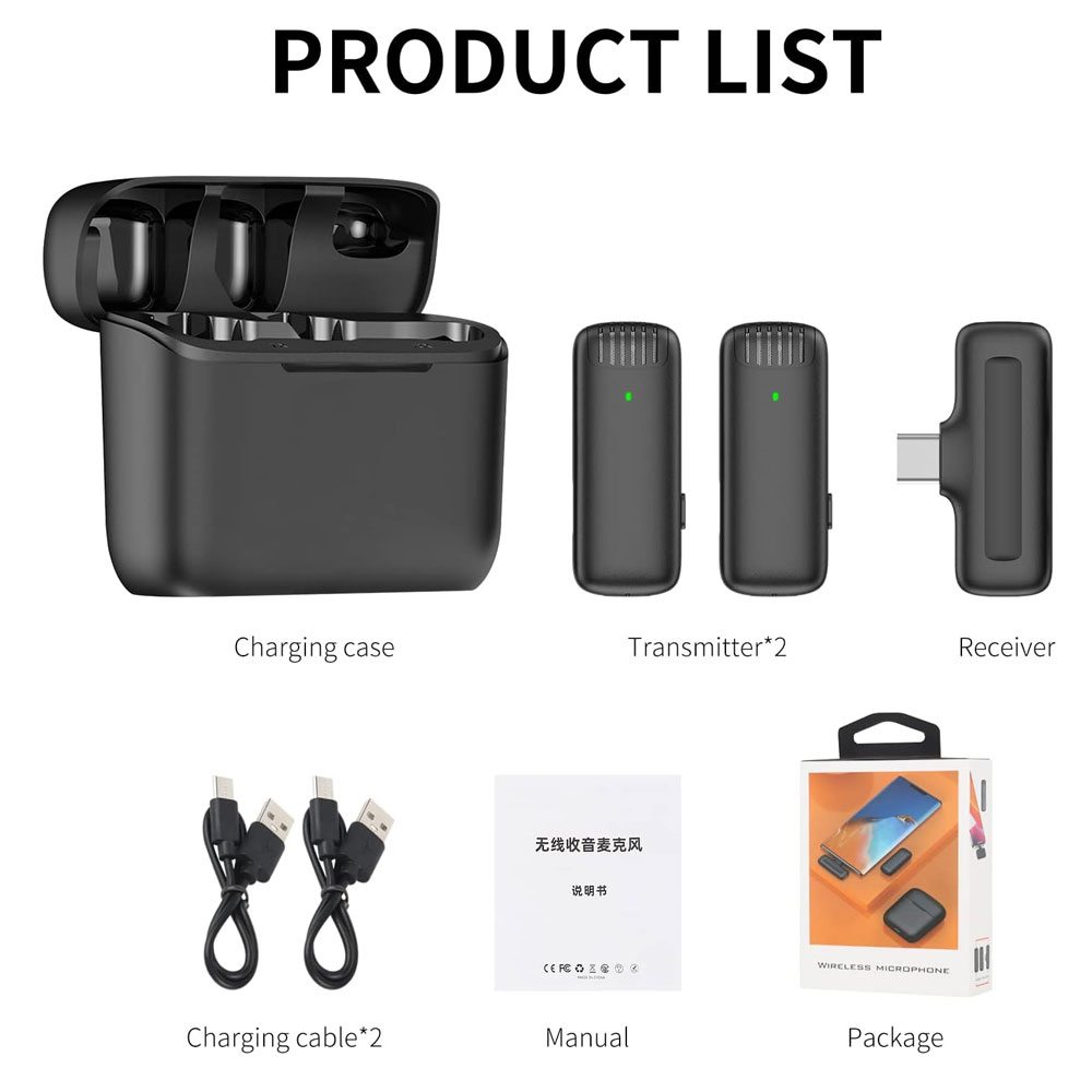 - The wireless lapel microphone equipped with lightning port receiver and USB-C port reciver which allow well work with android devices. Support Android Devices with type-C port receiver, Such as LG, Motolora, Huawei, Xiaomi, Oneplus etc. and some android phones need open OTG.
