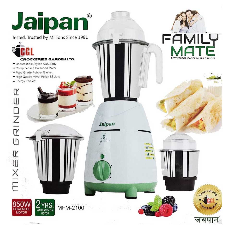 Buy Jaipan Family Mate 850W mixer grinder online from Cellsii.com. Jaipan unique family mate mixer grinder is best mixer with 3 stainless steel jars. This grinder does all kind of dry grinding of spices such as chilli powder, dhania, etc. Wet grinding jar does many things like soaked rice and tender paste and it also has a chutney jar and also helps in grating of some vegetables.