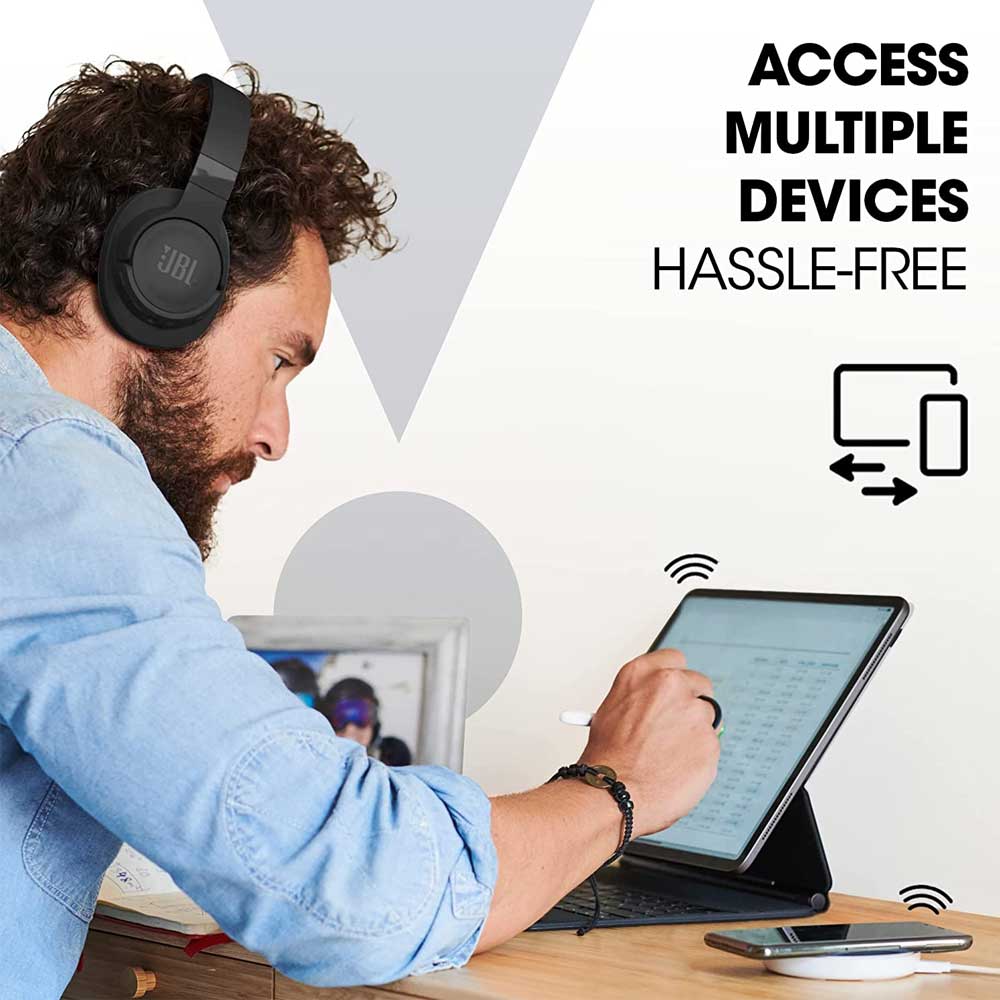 Buy JBL Tune 760NC Wireless Over-Ear NC Headphones online from Cellsii.com. Your music, nothing else matters. Over-ear, super comfortable, powerful, the JBL Tune 760NC keep the promise. The active noise cancelling blocks unnecessary distractions to let you focus on what matters, for up to 35 hours. Get an extra 2 hours of juice with only 5 minutes of charge. Lightweight and foldable to fit any adventure, the Tune 760NC can connect with two Bluetooth® devices simultaneously.