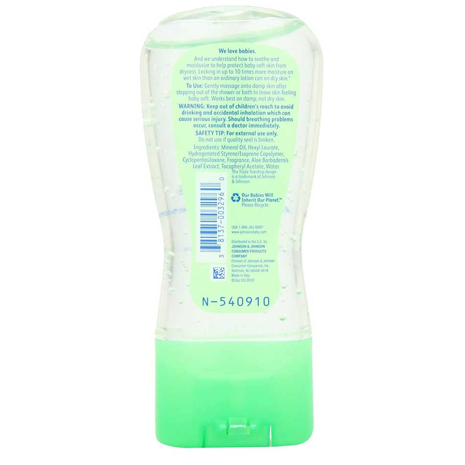 - This baby oil gel, enriched with Aloe Vera and Vitamin E, locks in up to 10 times more moisture on wet skin than an ordinary lotion can on dry skin, leaving you and your baby’s skin soft and smooth.