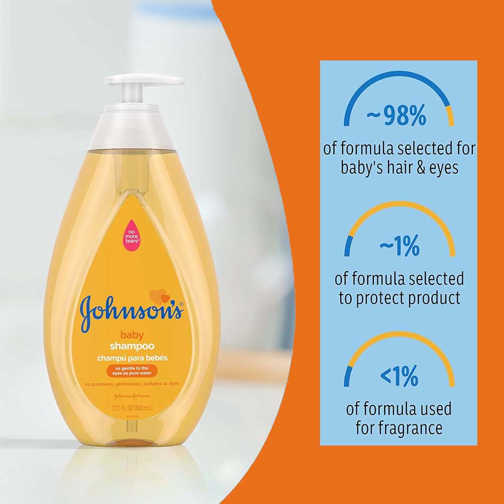 - Mild and gentle cleansing for fine baby hair & delicate scalp. Specially formulated to be as gentle to your baby's eyes as water and features Johnson's No More Tears formula.