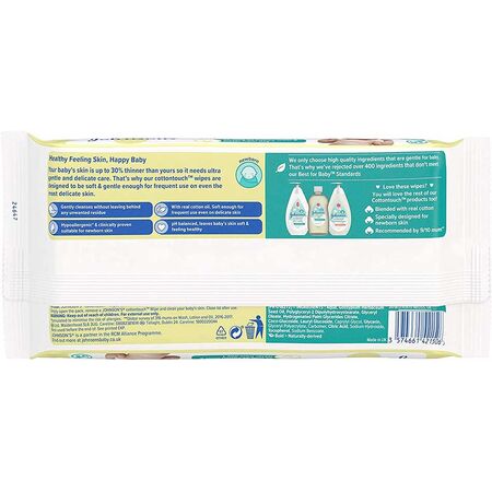 Buy Johnson's cotton touch baby wipes 56pcs online from Cellsii.com. This is specifically designed for delicate newborn skin/formulated to minimize the risk of allergies. Lotion with real cotton oil and no added fragrance/Soft and gentle enough for your baby's skin.