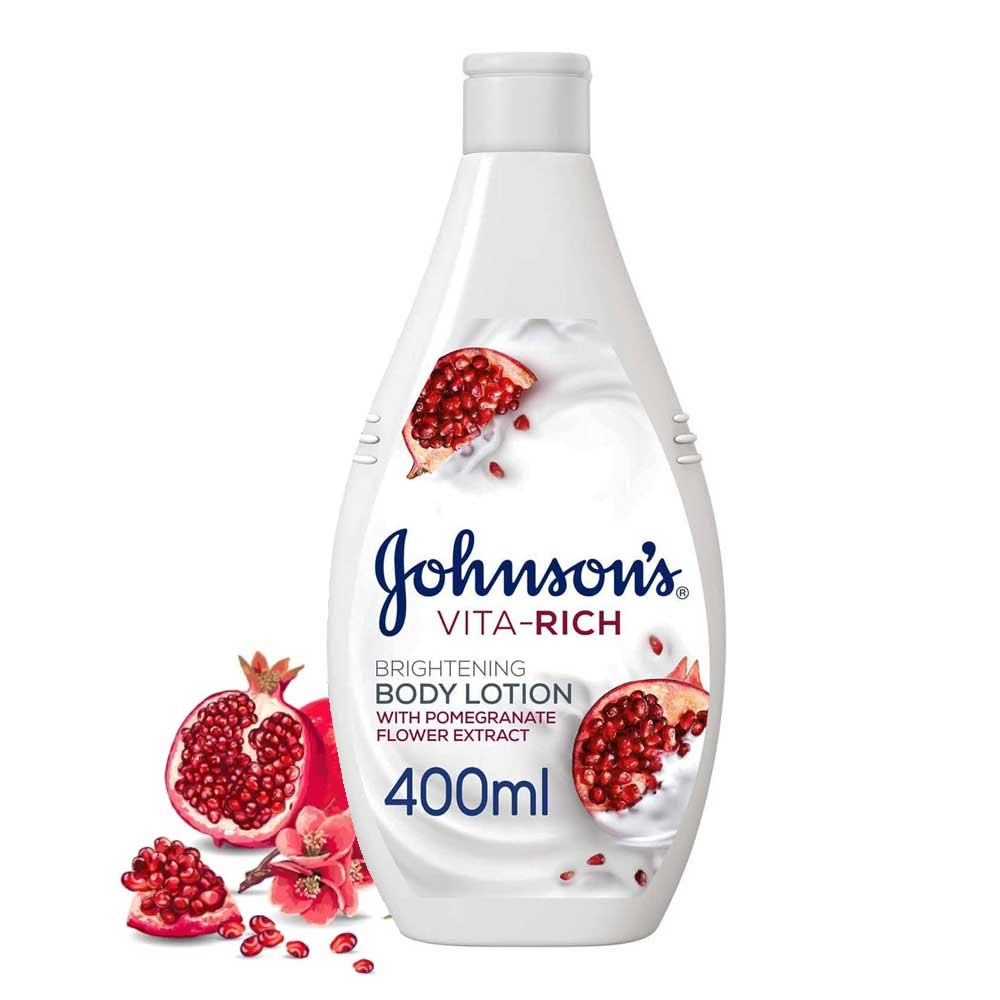 - Johnson’s Vita-Rich Brightening Body Lotion is a rich, fast-absorbing formula infused with a sweet fragrance that leaves your skin feeling