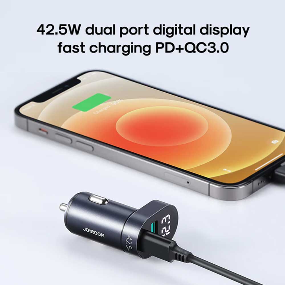 Buy Joyroom C-A17 Dual Port Fast Car Charger with LED Display 48W online from Cellsii.com. Intelligent voltage digital display real time detection of voltage status to protect equipment. PD 20w super output power officials agreement double the charging speed of the device.