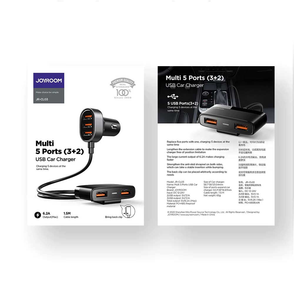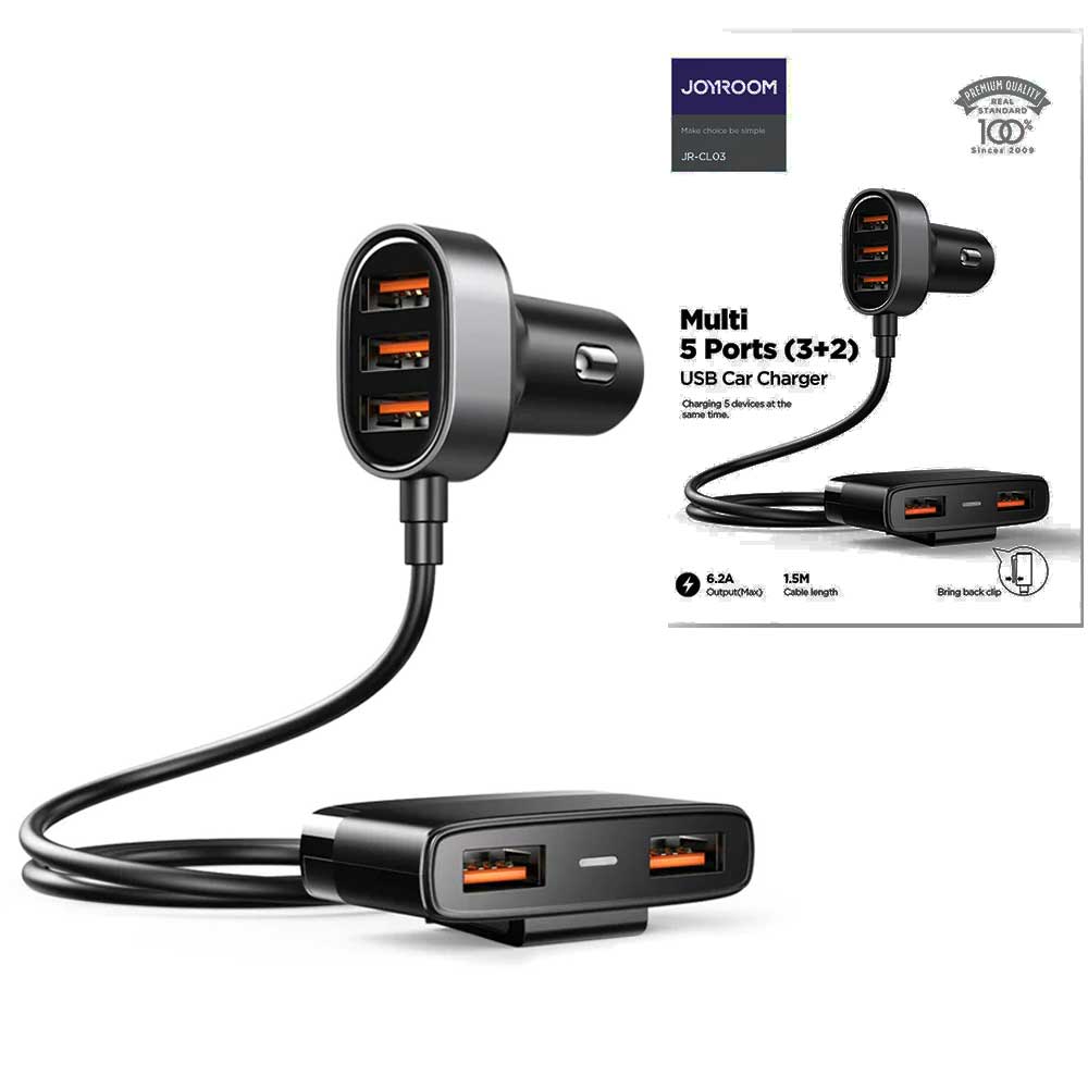 Buy Joyroom JR-CL03 Multi 5 Ports USB Car Charger online from Cellsii.com. The USB C car charger has 5 USB ports, 2 for the front seat and 3 for the back seat. The 1.5m charging cable allows back seat and front-seat passengers to simultaneously charge their electronic devices easily. Get one for your upcoming family trip, or give this as a holiday gift to someone you love.