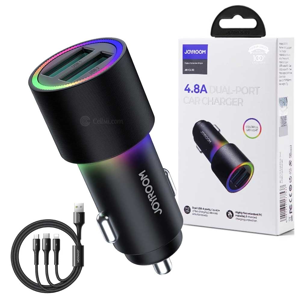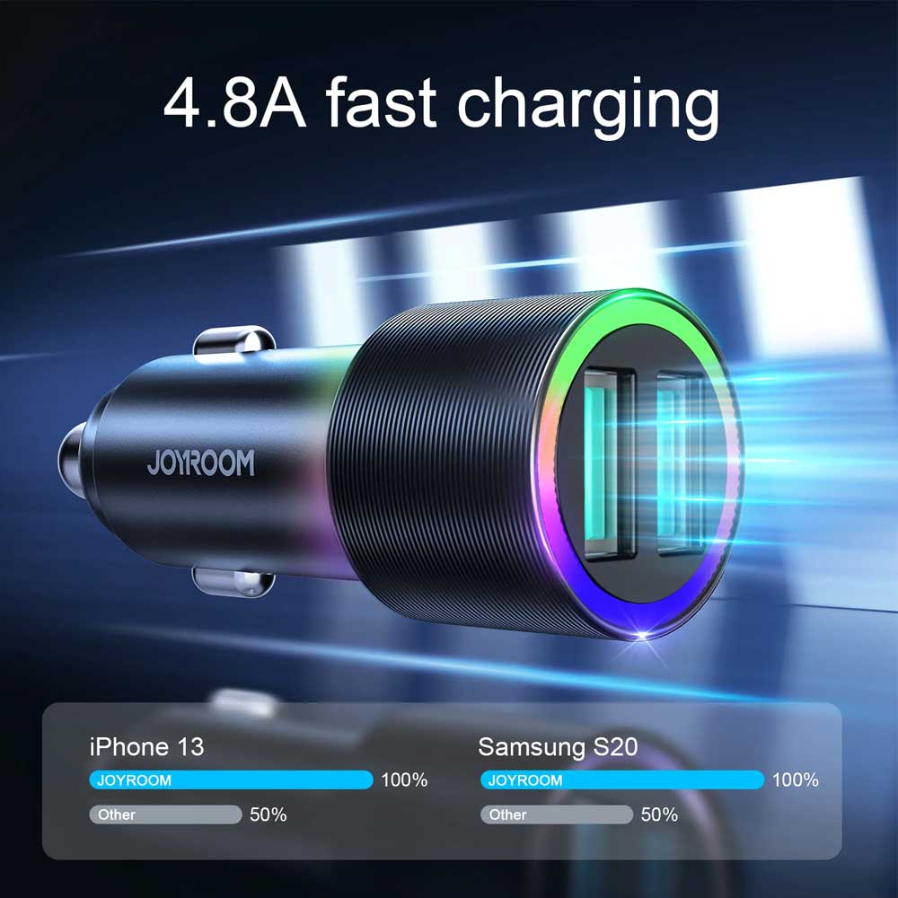 Buy Joyroom JR-CL10 Mini Car Charger 24W online from Cellsii.com. The total output power of the Joyroom JR-CL10 4.8A Dual USB Car Charger is 24W, which can provide full-speed charging for 2 mobile phones at the same time. Mini and compact, the maximum diameter is only the size of a coin, saving space and looking good. Cool colorful atmosphere lights, quickly find the charging port at night, and charging is more convenient.